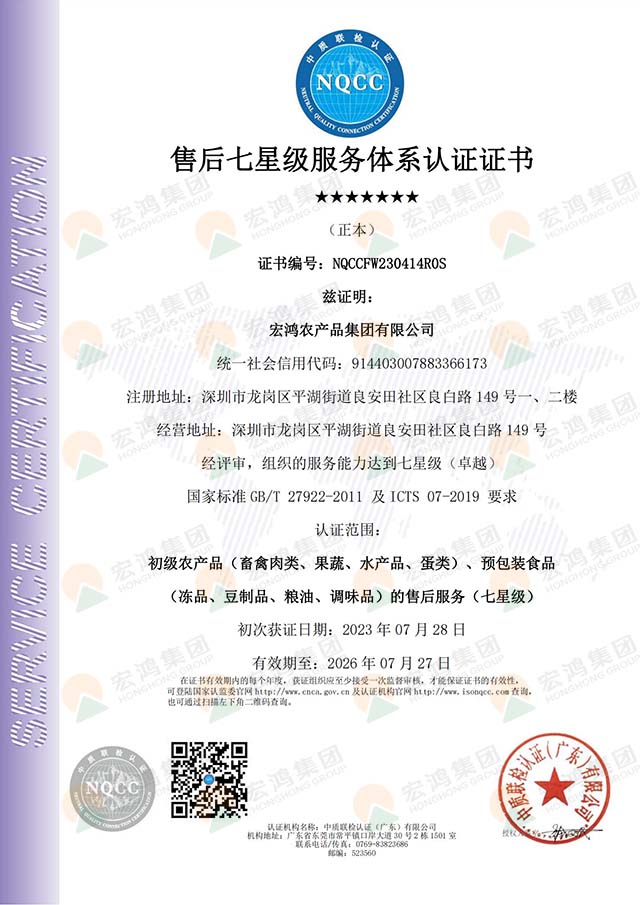 • 宏鸿被列入深圳市政府菜篮子工程。